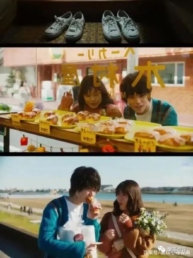 再后来,他们成了情侣,发现了一家宝藏面包店,是一对年近7旬的老夫妇所开。回家路上一起开心的品尝烘烤的面包。