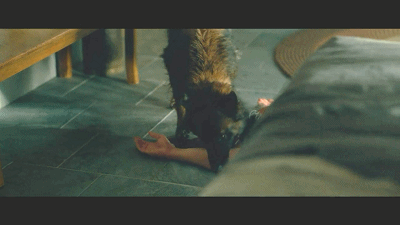 更可怕的是,一只饥肠辘辘的野狗循着血腥味进了房间。