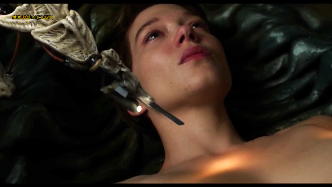 在预告片中,莫滕森躺在一个类似的骨架床里。这些仿生的科技帮助莫滕森孵化新的器官。