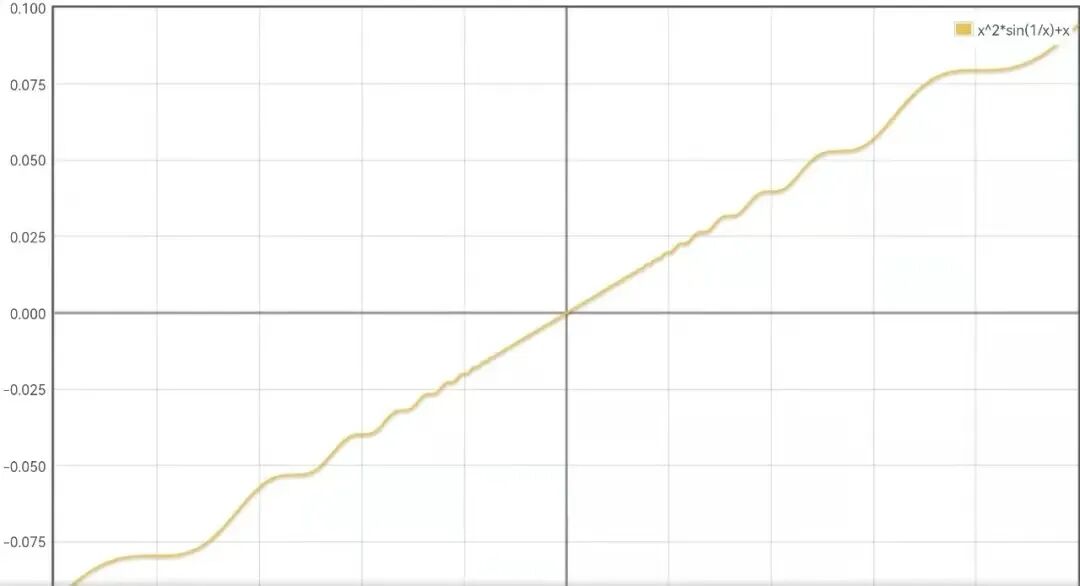 当时章鱼烧举例的时候,不是特别恰当,因为这个函数的导数,在x→0时是大于等于0的。
