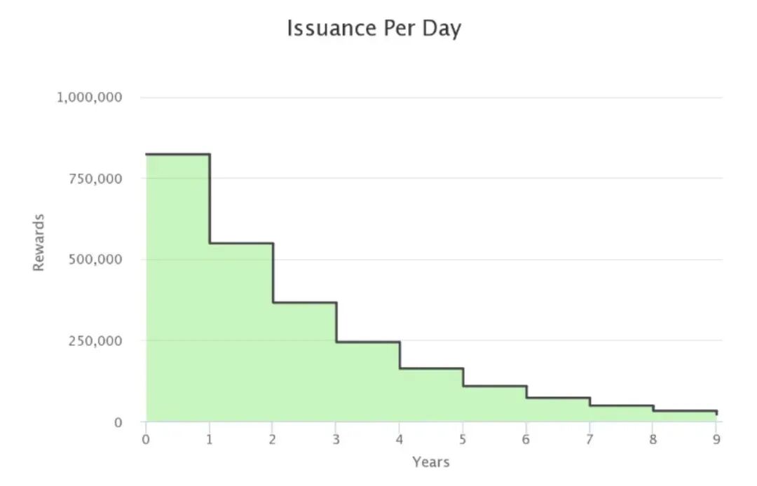 在前365个epoch(第一年),OSMO代币的发行量为3亿。在第二年,从2022年6月20日开始,Osmosis将发行2亿个代币。在第三年,数量将减少到1.33亿个代币。