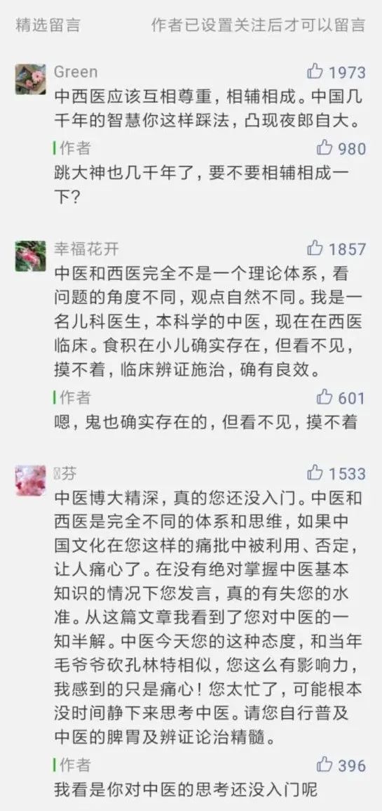 在这篇10万+的文章下面,我看到这位小儿外医生关于中医的“高论”!