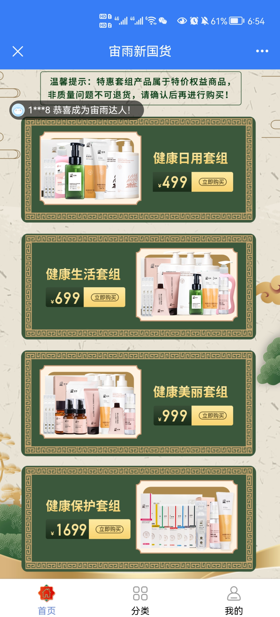 扫码注册后,下载软件进宙雨商城购买499大礼包,
