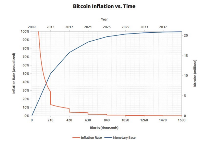 通过每4年将比特币的数量减少一半,它将不断降低通货膨胀率,直到一旦达到最大供应量,就有可能出现通货紧缩。由于没有新的代币被创造出来,它可能会变得通货紧缩,因此这意味着任何丢失或毁坏的代币都会从流通供应中有效地移除,并使剩余的代币更有价值。