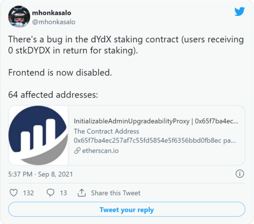 ldYdX staking 机制出现漏洞,可能会锁定用户存入的代币: