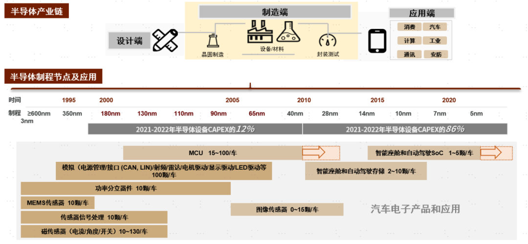 图表:半导体产业链、以及制程节点和应用