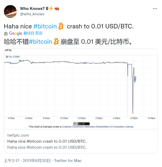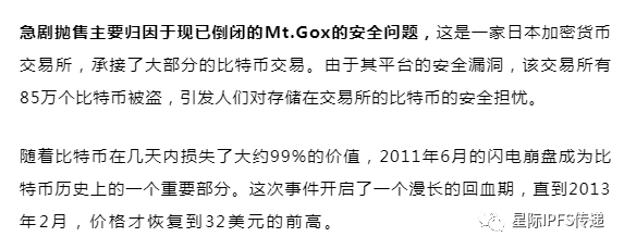 2011年4月底,比特币首次突破1美元的心理关口,展开有史以来的第一次大反弹,于2011年6月8日达到32美元。但是,这种喜悦并没有持续很久,因为随后比特币就开始暴跌,在几天时间之内跌到了0.01美元。