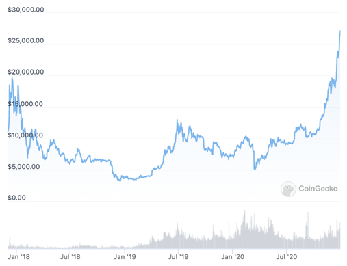然而,与比特币之前的历史峰值1000美元类似,20000美元的胜利是短暂的,因为比特币随后下跌,在几个月内损失了超过60%的价值。