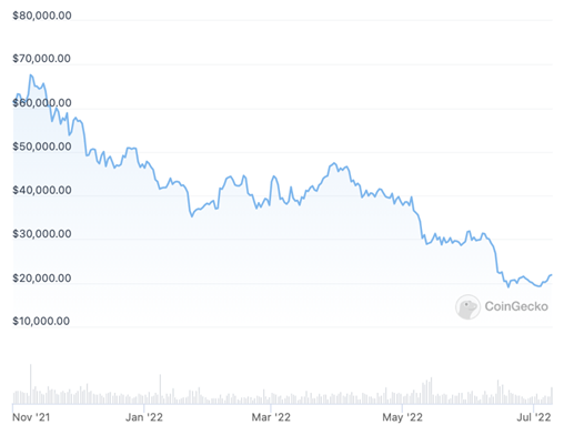 比特币未能突破70000美元,并在2021年底开始下跌。自去年11月以来,加密货币市场已开启熊市,使2022年成为历史上最大的一次下跌。