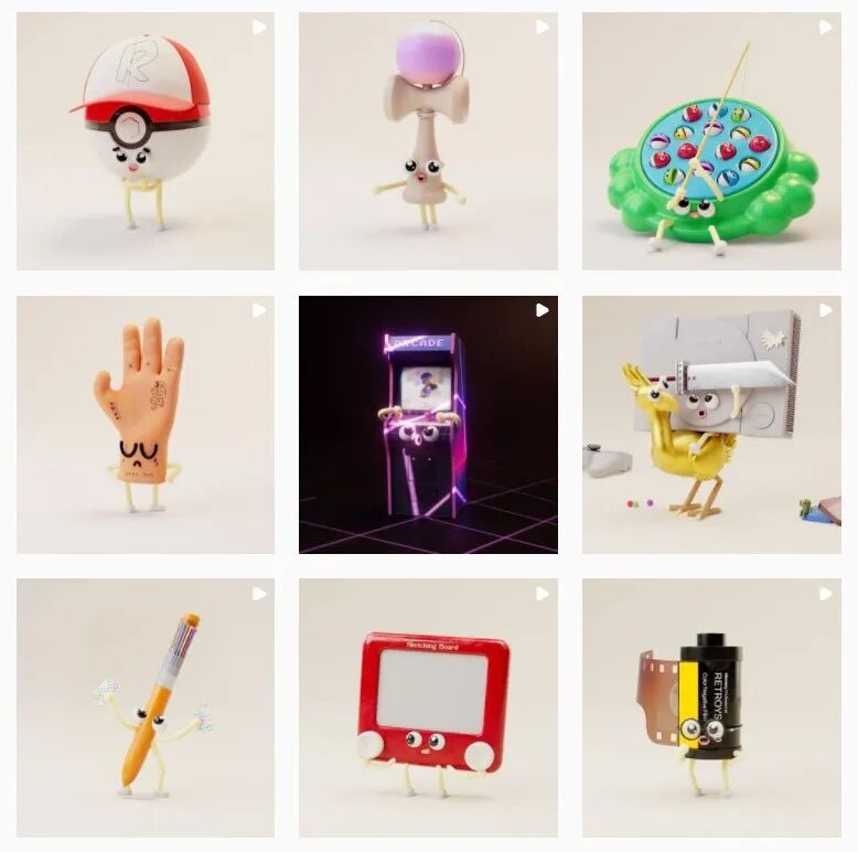 此案例的灵感来源来自三维设计师Tomi Folders的系列作品。Tomi将我们小时候的旧玩具以及电子设备通过三维的形式再现,并赋予了可爱的形象表达,勾起了许多人的回忆。