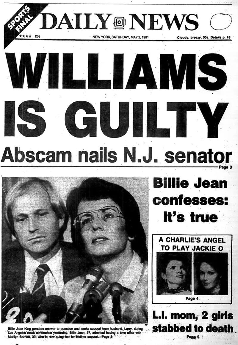 Marilyn和Billie Jean的丈夫同时出现在了比赛现场这段以金钱维系的感情注定不可能有一个好的结局,1979年,二人分手,之后Marilyn甚至将Billie Jean告上了法庭,这场官司也让Billie Jean被迫在公众面前“出柜”。![]()