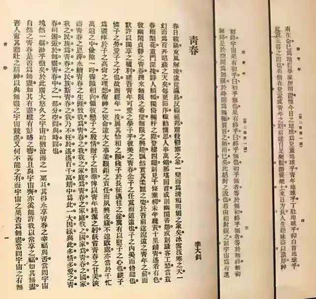 《青春》是革命先驱李大钊先生创作的文章,也是中国近代思想史上的一篇著名文献,最初发表于1916年出版的《新青年》杂志第2卷1号上。