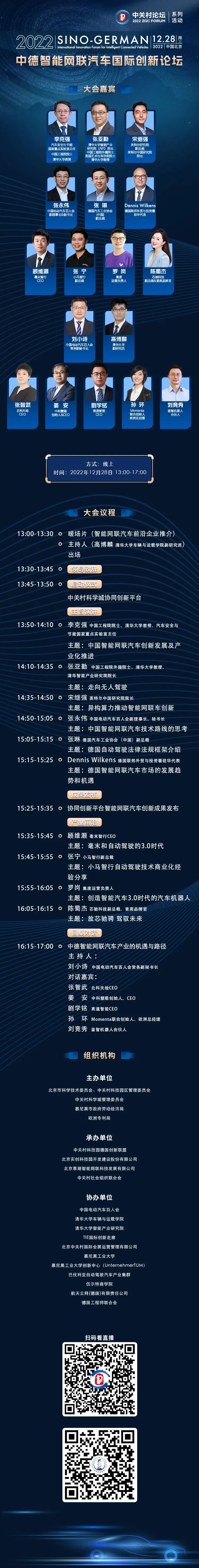 本次活动由北京市科学技术委员会、中关村科技园区管理委员会,中关村科学城管理委员会,慕尼黑市政府劳动经济局,欧洲专利局主办,中关村科技园德国创新联盟、北京实创科技园开发建设股份有限公司、北京翠湖智能网联科技发展有限公司、中关村社会组织联合会共同承办。论坛主要包括:领导致辞,知名学者和行业专家的主旨演讲,创新企业带来的产业前沿分享和圆桌对话,以及智能网联汽车协同创新平台启动仪式和创新成果发布。