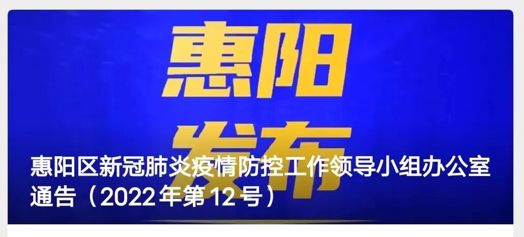 惠州市惠阳区、大亚湾区发布通告