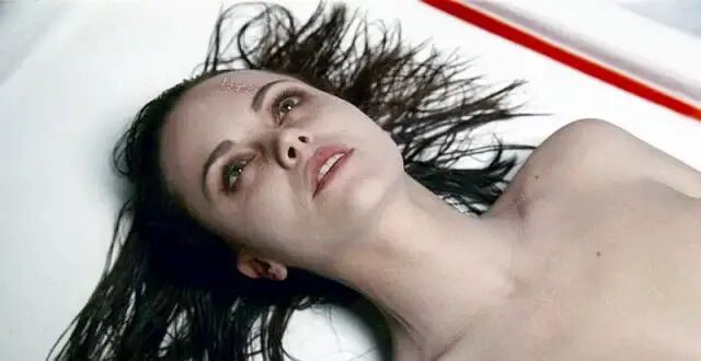 此时殡葬师艾略特正拿着剪刀剪她的衣服为安娜整理遗容,可见到安娜醒来却没有丝毫的惊讶;