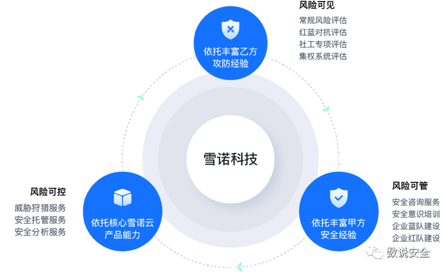 高雪峰表示,安全防御能力不光体现在产品上,还需要安全运营才能发挥效力。针对不同的客户,厂商是否能制定恰如其分的运营策略,配备差异化的运营团队,并进行不同形式的运营交付,是决定安全运营质量的关键因素。雪诺科技基于创始团队丰富的甲方安全建设及运营经验、攻防实战经验,为企业提供安全风险“可见、可管、可控”的闭环安全服务解决方案。![]()