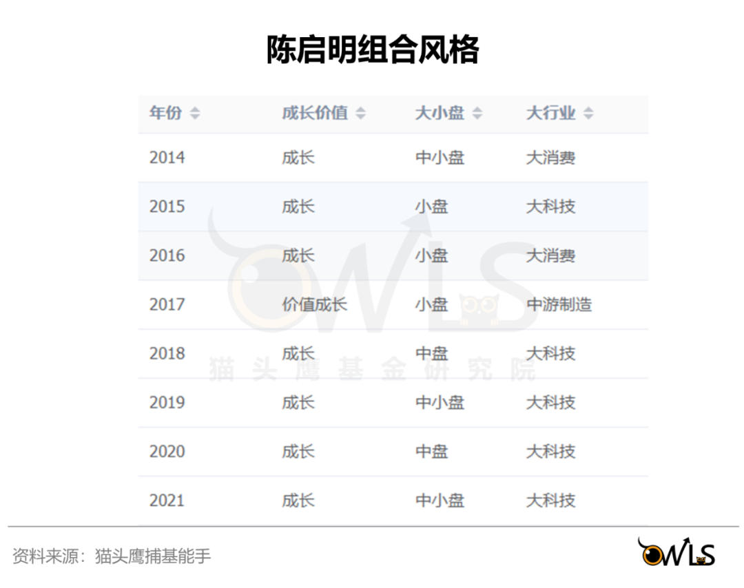 从方法论看,陈启明是以选股为主,并具备一定组合思维的均衡派选手。
