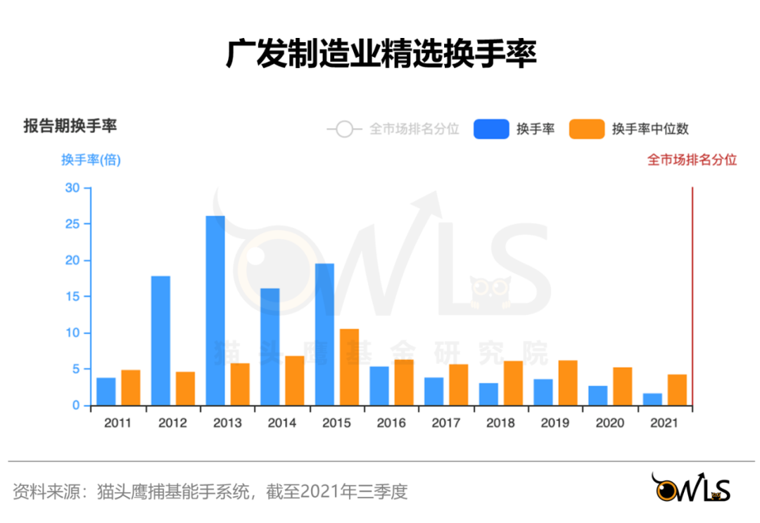 例如,如果看换手率,2012-2015年阶段,李巍的换手率明显高于市场中位数水平。而在2017年后,换手率水平变得远低于市场中位数水平。