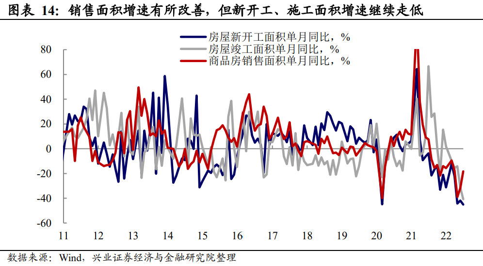6月商品房销售有明显改善,但未能带动房地产投资回暖。6月商品房销售面积同比为-18.3%,较前值-31.8%降幅明显收窄。从房地产开发资金来源来看,受此影响6月房地产开发资金同比为-23.4%,较前值的-33.6%降幅也有收窄。但6月房地产开发投资同比为-9.4%,较前值的-7.8%降幅进一步扩大。在房地产市场低迷的背景下,单月的销售改善难以扭转房企信心,此外,从高频的销售数据来看,6月的销售改善未能延续。