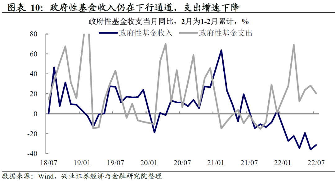 政府性基金:收入仍在下滑通道,支出增速略有下降。