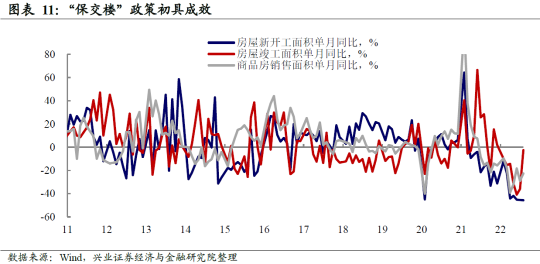 房地产需求端仍然疲弱,供给端小幅改善。无论从销售面积还是销售价格而言,当前地产销售仍然较为疲弱。但从供给端而言,自7月28日中央政治局会议提出“保交楼、稳民生”之后,“保交楼”效果初见成效。8月房屋竣工面积虽然同比仍然为负(-2.49%),但是相较7月而言降幅缩窄了约33.53个百分点。