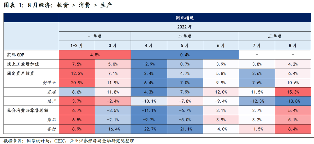 宏观部分来自证券研究报告:《8月经济的支撑力和持续性 ——2022年8月经济数据点评》