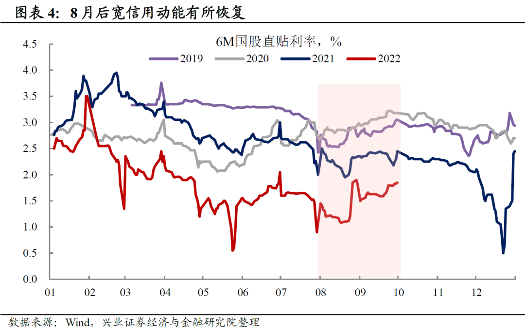 稳增长政策带动效果加快显现,企业宽信用动能修复。在前期政策持续落地基础上,接续政策再度发力并快节奏落地,带动效果也进一步显现,企业宽信用动能修复。2022年8月社融数据出现修复,主要体现政策支持性融资需求已经有所修复;2022年9月,新增社融再超预期,企业长、短期信贷改善幅度加大,企业债券融资同比少增大幅收窄,企业股票融资由前期同比少增同比转为多增,显示实体经济融资需求快速修复,信用扩张动能恢复。