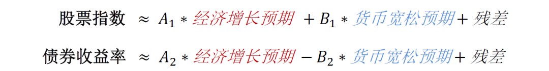 资本市场反映了多少程度的“稳增长”和“宽货币”?在此前的大类资产配置报告《宽货币VS宽信用,大类资产怎么配》中,我们讨论了如何从大类资产的角度看市场反映了多大程度的“稳增长”(与宽信用高度相关)和“宽货币”,即股票指数与经济增长预期正相关,同时与货币宽松预期正相关;而债券收益率与经济增长预期正相关,同时与货币宽松预期负相关。因此,在经过系数调整之后,股票指数+债券收益率更能体现经济增长预期,而股票指数-债券收益率则更能显示货币宽松的预期。两个经济预期共同决定了不同投资策略的胜率和赔率。