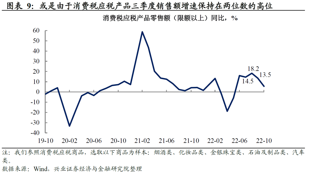 消费税、企业所得税、增值税是主要拉动。10月,税收收入同比增长15.2%(前值0.4%),其中消费税拉动4.9个百分点(前值-0.5),反季节性抬升,部分可由于去年同期低基数解释,但更重要的或是三季度消费税应税商品零售额增速在两位数的高位;企业所得税拉动4.1个百分点(前值-0.8);增值税继续改善,拉动4.1个百分点(前值2.9)。前瞻地看,9月22日,国税总局局长王军表示,“中国税务部门正在开发‘金税四期’(智慧税务),今年年底将基本开发完成。[1]”我们预计,明年随着“金税四期”正式投入使用,我国税收及非税收入征收或将更加规范透明,逃税偷税漏税等事件或将进一步得到遏制,税收收入除了将受到经济修复的提振,还将受到规范征管的支撑。
