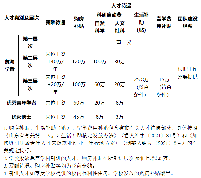 根据人才所取得的成果和发展潜力最高可提供安家费100万元,科研启动费200万元,岗位津贴每年10万元。对引进的青年人才学校提供良好的科研实验条件和工作环境,根据学科方向配备指导老师并加入相应的教学、科研团队。
