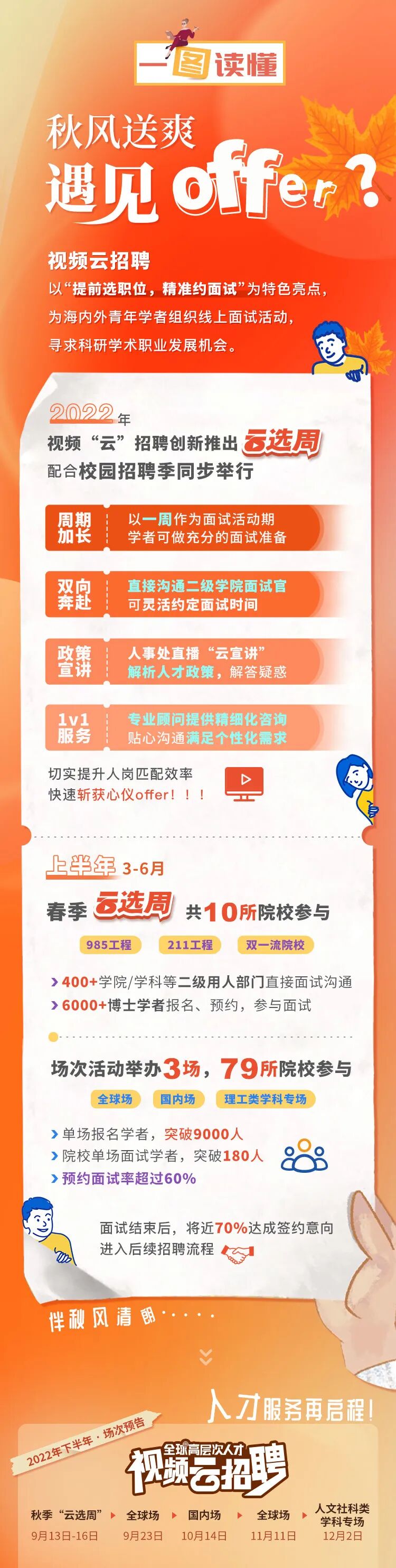 这是一场相互选择、双向奔赴的高质量“牵手”活动。走出校门、求职就业、开启新的征程,博士发起求职宣言,誓要找到适合自己的高校;走近学者、深度解读、大开方便之门,高校直播宣讲互动答疑,诚挚邀请优秀人才加盟。