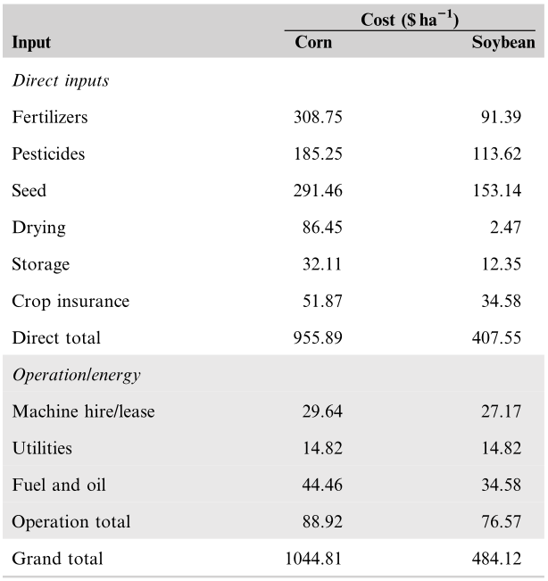 Table 1:Costs of inputs for corn and soybean production in central Illinois