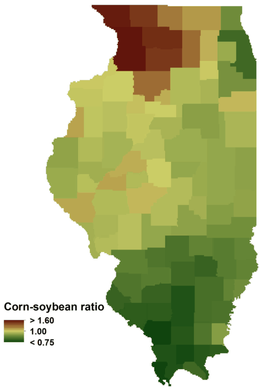 Figure 1:The corn‐soybean acres ratio for Illinois, 1999–2018
