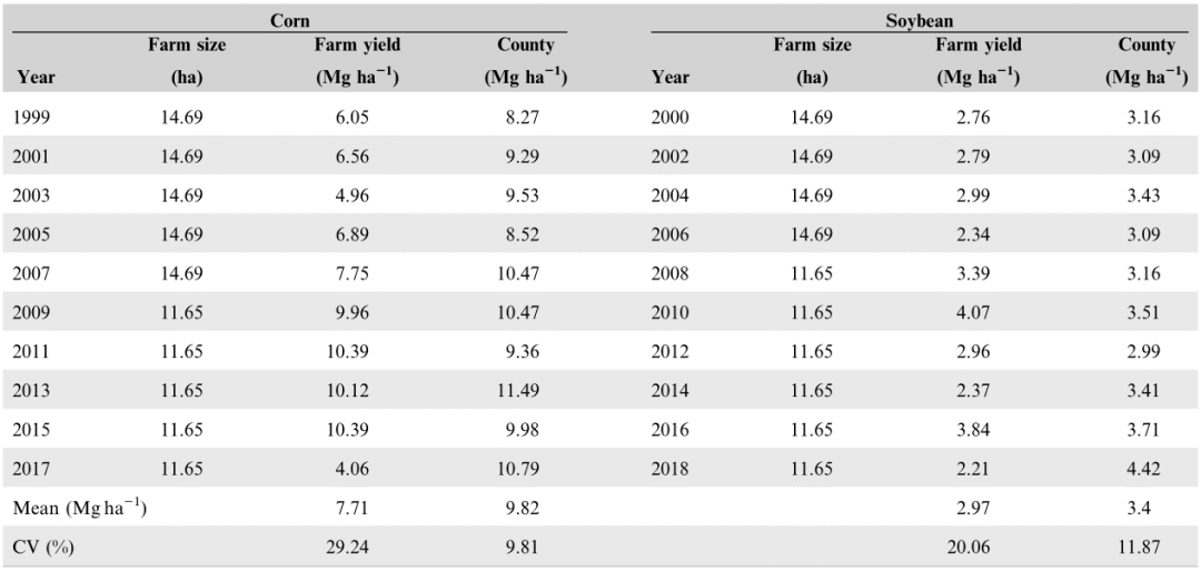 Table 3:Ten‐year yields of corn and soybean (Mg ha−1) from the study site compared to the average in Jersey county, IL