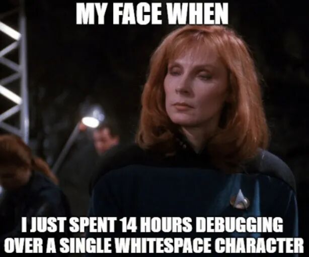 没错,这个看起来与 Golang 中的双引号格式差不多,可读性也被各种转义字符完完全全破坏掉了。在我不停尝试下,依然没有办法得到我想要的 Block Scalar Style。不管是 Golang 中 YAML 格式的序列化(Marshal)方法,还是 Google 中都没有找到我想要的信息。无奈之下,只能查看并调试 Golang YAML 库来看看问题出在哪里。最终,在控制序列化 YAML 格式的过程中发现了一个细节,当存在行末空格时,即出现一个空格符号连着一个换行符时,字符串格式会被强制使用 Double-quoted Scalar Style!发现这个逻辑之后,再反过来去看字符串中确实有一个行末空格。把行末空格去掉之后确实能够得到 Block Scalar Style 的字符串了。这里可以使用 VSCode 的 Render Whitespace trailing 功能。