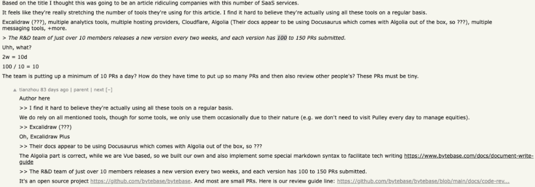 在一家全球化初创公司背后的 30+ SaaS 服务和成本这篇文章中有提到 Bytebase 在研发团队只有 10 人的规模下,做到了每两周一次发布,且每个版本有 100 - 150 左右的 PR 数量。这样的「壮举」也在 Hacker News (https://news.ycombinator.com/item?id=32982425) 上引发了讨论。随着时间的推移,现在 Bytebase 已经演化到 10 人,2 周,200+ PR。想要做到极致的研发效率是需要「因地制宜」考虑所有环节,琢磨每一个细节,并且离不开每一位同学的努力。正如软件工程中的「没有银弹」所言,不同的组织、不同的研发背景是需要不同流程和策略才能达到研发效率的山顶。不过,在追求研发效率的过程中,一些想法和思路是可以参考借鉴的。接下来本文会通过一个具体的例子来探秘 Bytebase 追求研发效率的冰山一角。