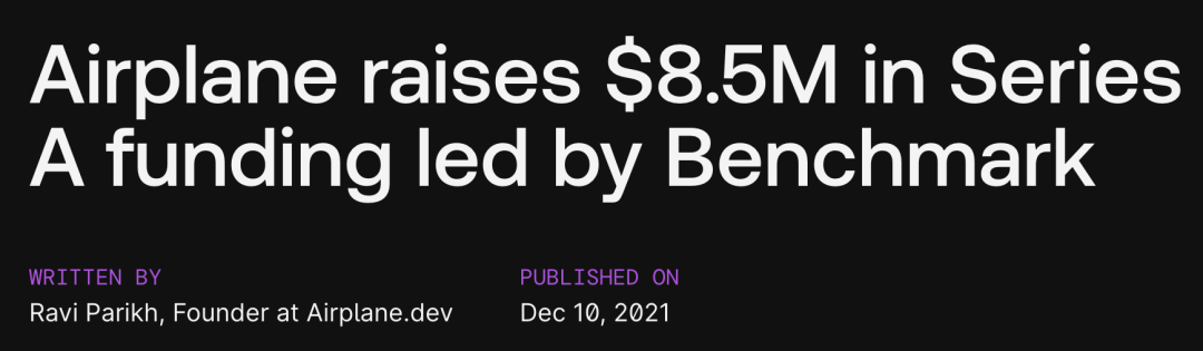 Ravi 和 Joshua 分别于 2020 年的 6 月和 8 月后离开各自之前联合创立的公司,加入了 Benchmark 成为 Entrepreneur In Residence。再看一眼 Airplane 两轮融资官宣的消息,都有 Benchmark 加持,应该就是 Benchmark 孵化的企业吧 🐶。