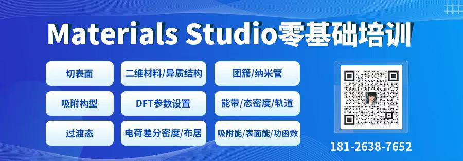 下一步是进行反应动力学计算,以获得计算速率系数所需的参数。确保TS.xod收集文档为当前文档。关闭其他文件。在进行反应动力学计算之前,应确保输入结构合理。要做到这一点,应首先进行振动分析。从菜单栏中选择Tools | Vibrational Analysis,打开Vibrational Analysis对话框。双击TS结构将其选中,单击对话框中的Calculate按钮。为了计算正确的速率系数,反应动力学任务需要确定反应类型;即反应为分子异构反应、合成/分解反应还是置换反应。这是通过指定运动组来完成的。反应动力学任务可将运动组分配给反应片段;但是,可以使用Motion Groups对话框显式设置反应物和产物上的运动组。从菜单栏中选择Modify | Motion Groups,打开Motion Groups对话框。选择产物中的乙烯结构并创建一个运动组,然后选择丁二烯结构并创建第二个运动组。在集合文档中选择TS结构,然后单击Create from selection按钮。对反应物分子重复此步骤。关闭对话框。总共应该分配四个运动组,其中反应物和过渡态各一个,产物中有两个。打开DMol3 Calculation对话框,在Setup选项卡上将Task更改为Reaction Kinetics。单击More...按钮以显示DMol3 Reaction Kinetics对话框。勾选Optimize transition state复选框并关闭对话框。在Job Control选项卡中,取消勾选Automatic复选框。在Job description中输入Kinetics。此计算任务完成后,将生成更新的Kinetics.xod文档。在本部分中,将分析输出文件Kinetics.xod,并计算速率系数。将Kinetics.xod文件打开为当前文档,打开DMol3 Analysis对话框,并选择Reaction kinetics。将温度范围设置为From 200.0 K To 1000.0 K。取消勾选Apply tunneling correction选项卡,单击Calculate按钮。将产生一个数据表,包含反应速率Arrhenius方程的参数:计算出的参数可与从分解反应的激波管实验(Tsang, 1965)获得的实验值进行比较,DMol3还提供了合成反应的参数。注意:将计算精度Quality设置为Fine可以获得更接近实验值的结果,但是计算可能需要更长的时间。从菜单栏中选择File | Save Project,然后选择Window | Close All。本教程对应视频将在杨站长视频号、华算科技B站同步推送,敬请各位关注。Tsang, W. J. Chem. Phys., 42, 1805 (1965).为了让科研党尽快上手Materials Studio并发表高档次文章,华算科技杨站长原创设计并经过多次迭代优化,推出了MS系列课程。结合案例深入浅出,带大家从入门到进阶,手把手带你扎扎实实、快速入门DFT理论计算!学员利用课上所学已发表Angew.、AM、AEM、Nature子刊、New Journal of Chemistry、Applied Surface Science等顶刊文章。报名方式:识别下方二维码报名,或者联系手机:18126387652。