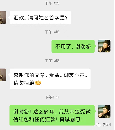 我再解释一下,除了按公号规则,例行地设置打赏功能,我绝不会接受朋友任何金钱馈赠。