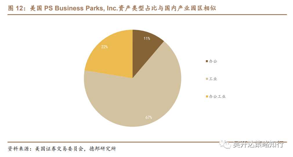 与张江光大园区同为产业园区REIT的PSB公司估值为20.14。PS Business Parks, Inc.(PSB)公司是美国为数不多的产业园区REIT,主要负责开发、管理、租赁并收购郊区办公和工业地产,底层资产为工业、办公和工业办公组合(flex space)。截止2020年底,该公司共拥有98个产业园区和675栋物业,可出租面积总计257万平方英尺,其中包括工业、办公工业组合、办公面积分别为18.4、 6.2和3.1万平方英尺。据公司2020年年报,该REIT每股经营现金流为$6.51,根据P/FFO估值法得到该REIT估值为20.14。