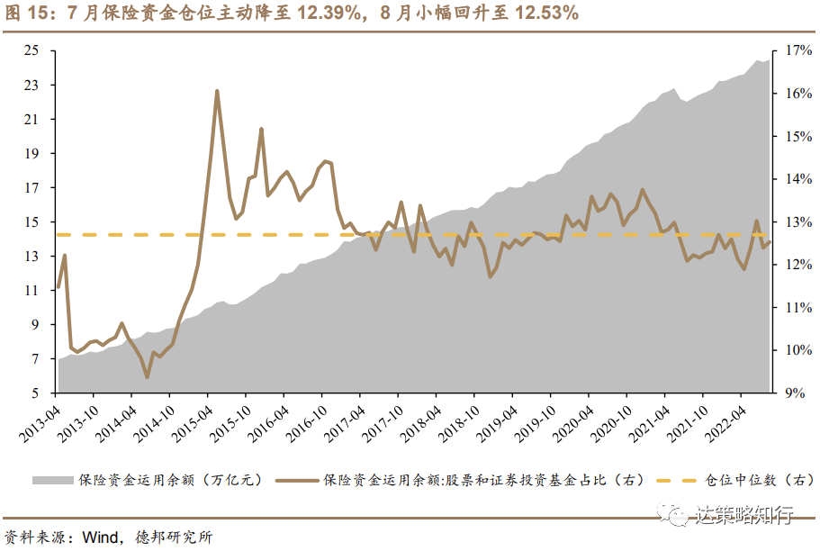 5. 保险资金:7月降低权益规模控制仓位水平,8月小幅回暖