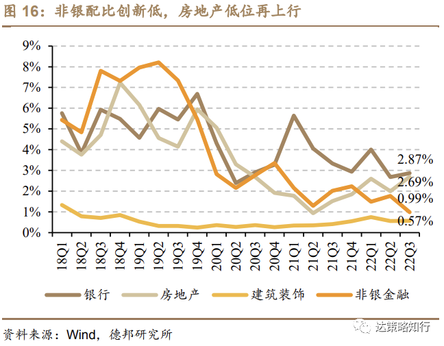 4)金融房建:非银配比创新低,房地产配比低位上行至20Q3以来高点;
