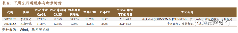 下周已公布2家参与初步询价。初步询价时间安排:11月15日,东星医疗(301290.SZ),昆船智能(301311.SZ)。