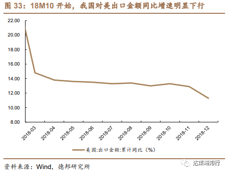 9-12月,受中美贸易摩擦影响较小的金融、农林牧渔表现相对较好。2018年9月18日,美方宣布自9月24日起对2000亿美元中国输美产品加征10%的关税,进而还要采取其他关税升级措施,这也标志着中美贸易摩擦再度升级。受此影响,2018年10月开始我国对美出口金额同比增速明显下行,同时,A股整体盈利增速在Q3和Q4也大幅下滑,在此背景下,科技类行业、受影响小的金融行业以及开启大级别猪周期的农林牧渔行业相对更为抗跌。
