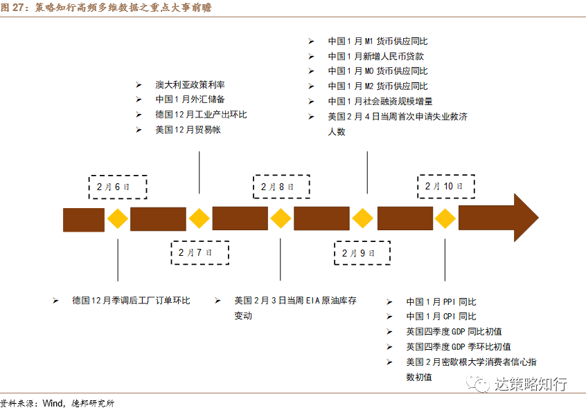 国内:开年经济延续回升态势。1)1月我国经济景气水平全面回升。PMI为 50.1%,环比升3.1pct,分项方面仅出厂价格指数出现回落,另外服务业回升幅度更大,商务活动指数升至54.0%,环比升14.6pct。2)受到春节复工影响,工业生产腾落指数、拥堵指数均呈现季节性回升。