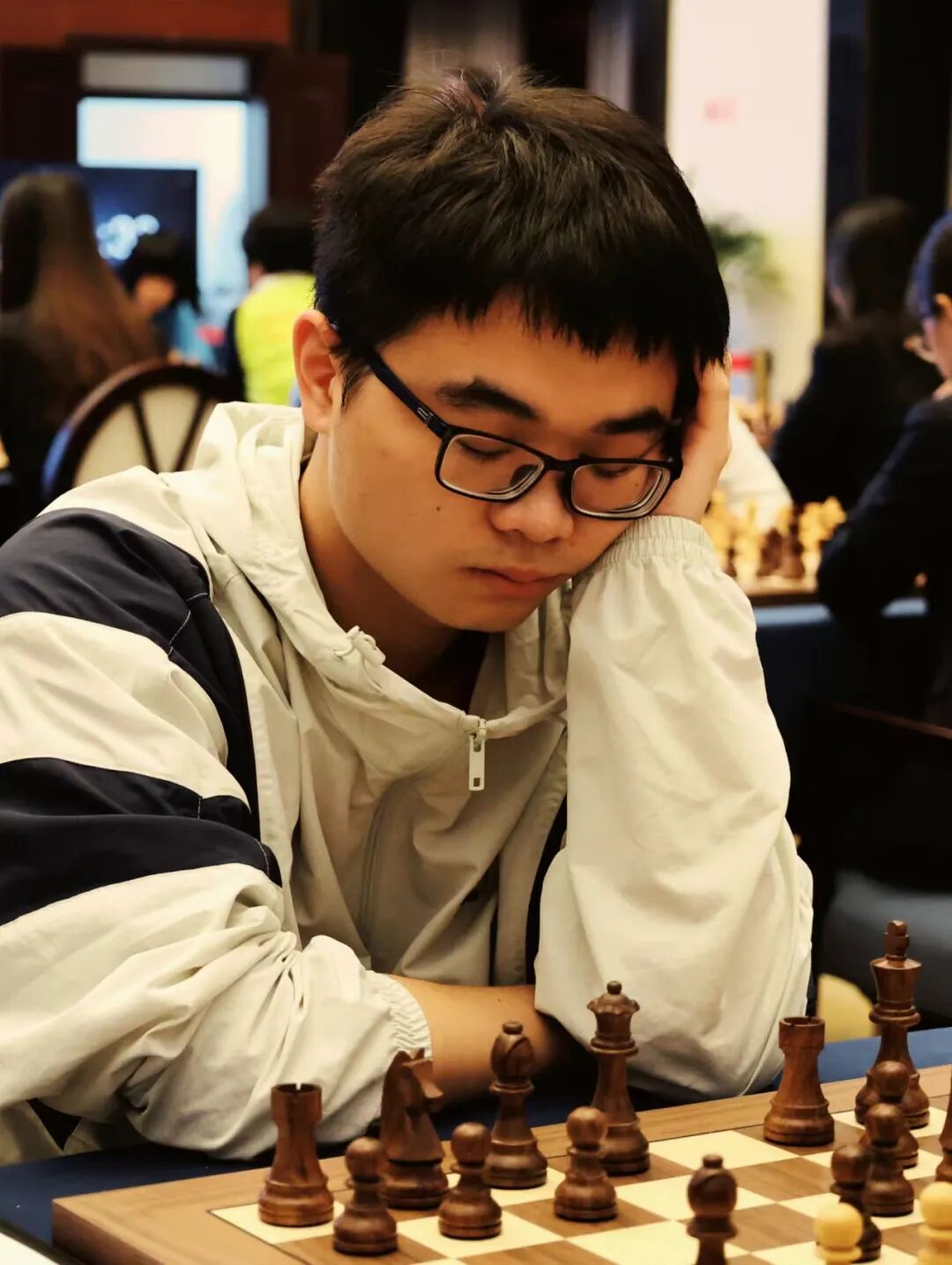 此时是比赛的第14轮,一天两盘高强度的连续作战已经让很多棋手体力到了极限。这位选手也是我的队友,他在这盘棋结束后测出了40度的体温。