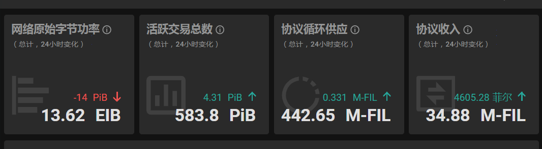 FIL,总协议收入3.488千万FIL,30天新终止扇区算力:6.56PiB。