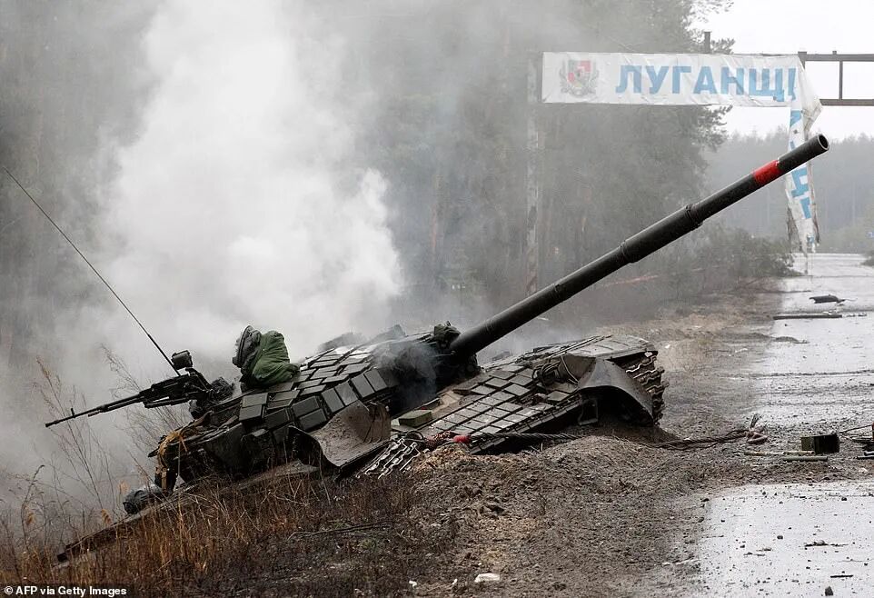 图像还包括在乌克兰北部被摧毁的俄罗斯坦克,其中一些似乎表明那些军事装备甚至在战斗开始之前就处于恶劣状态。