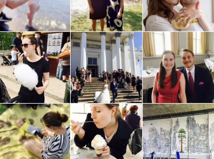 在马林的Instagram上,不乏她大吃冰淇淋和棉花糖的照片、在意大利度假时在泳池边拍摄的照片,还分享了她参加活动支持同性婚姻的照片。