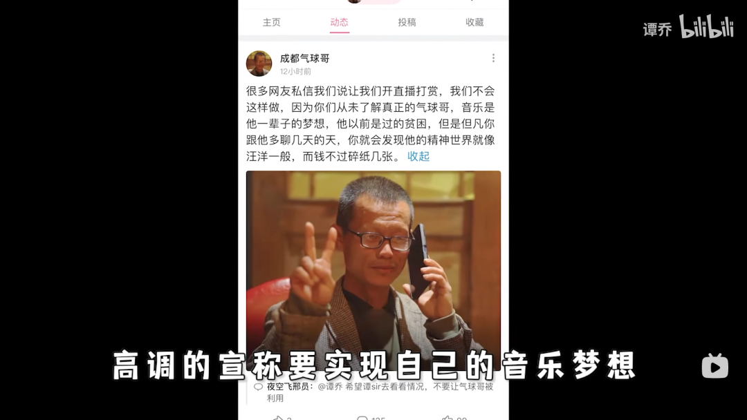 气球哥还有另外一种直抒胸臆(修饰人生)的方式,唱歌。